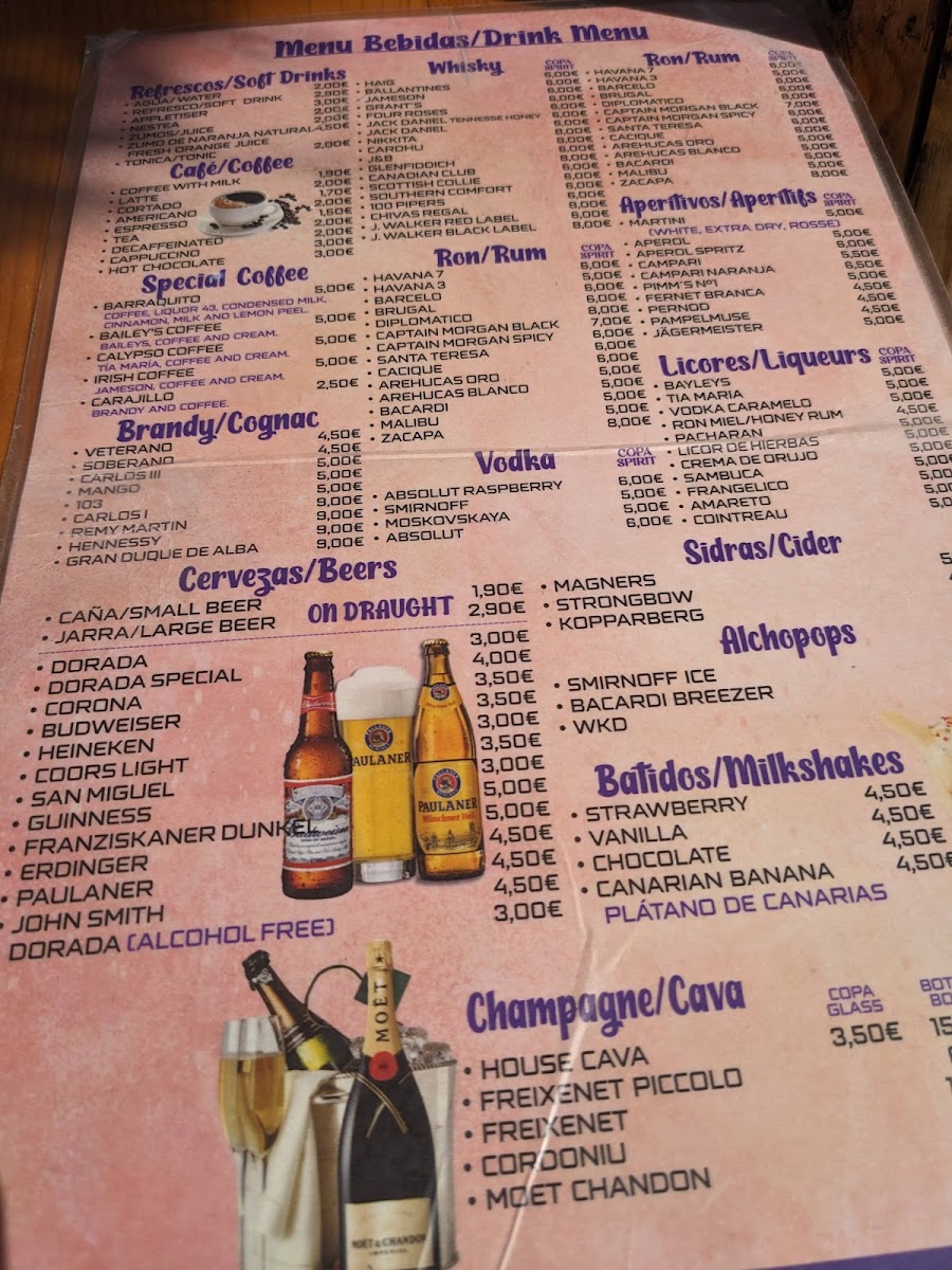 “ By sheer fortune we landed in this fantastic little tapas bar. We had stopped in Matagoria, in a different tapas bar but found the prices there rather expensive for each dish, so moved on to this place. And both wifey and hubby were very grateful for the divine intervention. The price here per tapas dish is just under €6, where the other Cafe was charging nearly double this. And I have to say all of the tapas dishes that we tried were fantastic. It's even hard to rate each dish from best to worse, as they all hit a very high standard. The prawns, The battered fried squid, The meatballs, The padron peppers, The canarian potatoes... All of it was moorish. We would certainly go back and try more dishes, as some of them look very interesting on the menu. However sometimes our eyes deceive My stomachs and we cannot physically fit all of that good stuff in. These dishes look really authentic, and believe us when I say yet again, are extremely delicious as well. But next time we'll have to try them. Also the coffee's here are actually very strong and a nice ending to the meal. We visited on a second occasion but this time we had to try more standard plates. Consistency is strong here so it's easy to recommend, as you know you are getting a standard each time. Hubby went for the spaghetti bolognese. And wifey tried the octopus salad. Both dishes were fantastic as well. Wifey absolutely enjoyed her salad. And hubby tried a few pieces and they were actually delicious. The spaghetti bolognese was a simple dish that can often be lacking in lustre... But not this one, one of my favorites of Lanzarote. The staff is really nice and you get the family run business vibe from them. You have the Son server, Uncle server, Auntie chef, Mama Bar, and Dad server. All friendly except the Dad, who gives off serious Godfather vibes. I don't mean to say he is rude by any means. But serious, I wouldn't dare criticise the place lest he shows me where the fishes sleep. Just a no nonsense kind of guy, and I can respect that. If you are in the area, try the tapas. This place has some exotic dishes for the Western pallet. Surf you're feeling experimental, definitely worth the try. Great food and great value as well. ”